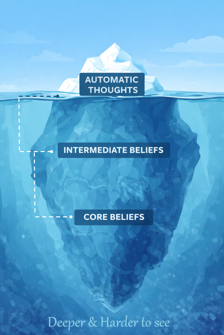 Automatic thoughts are the quick reactions that show up in daily life-revealing what you truly believe underneath.